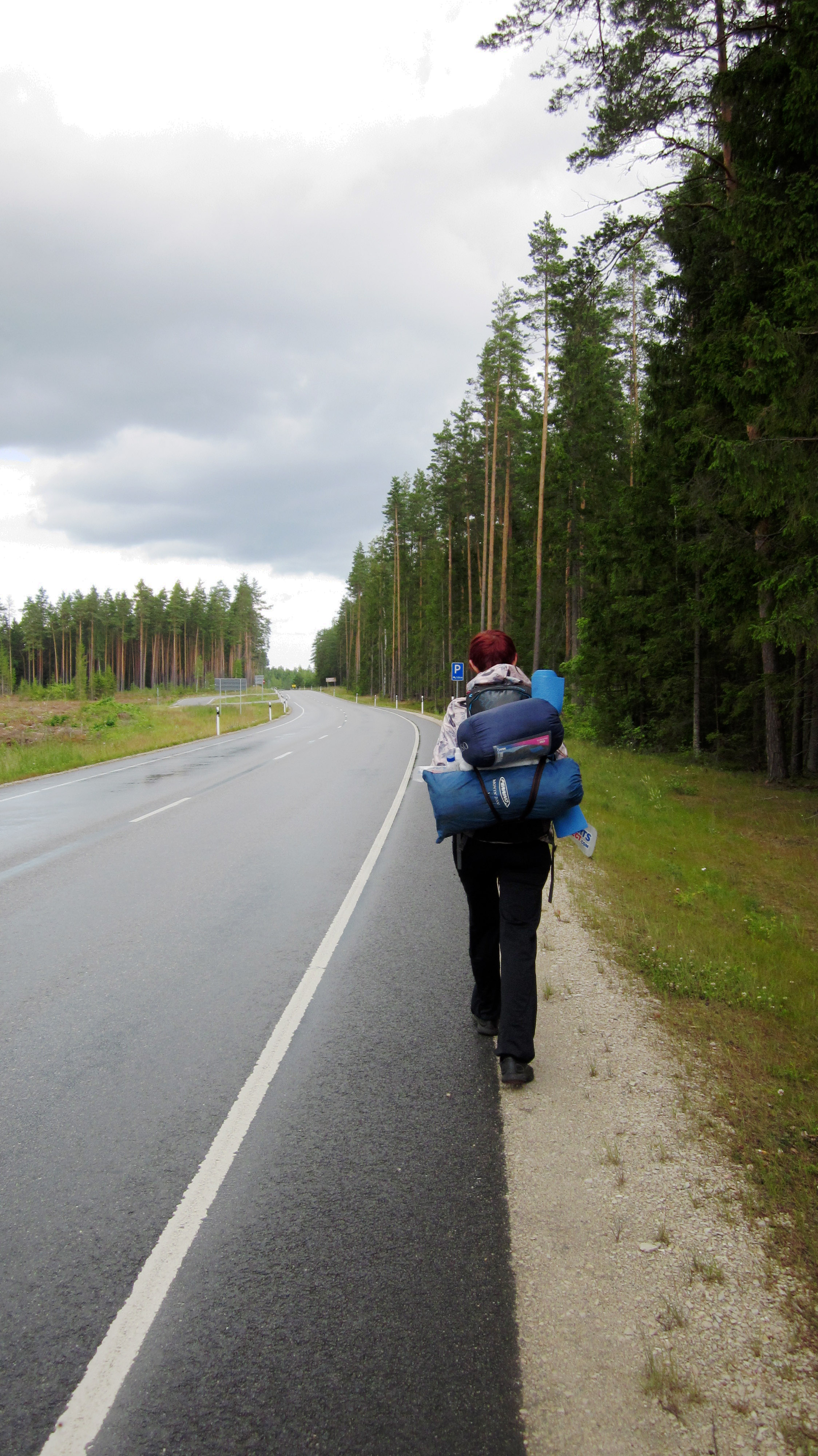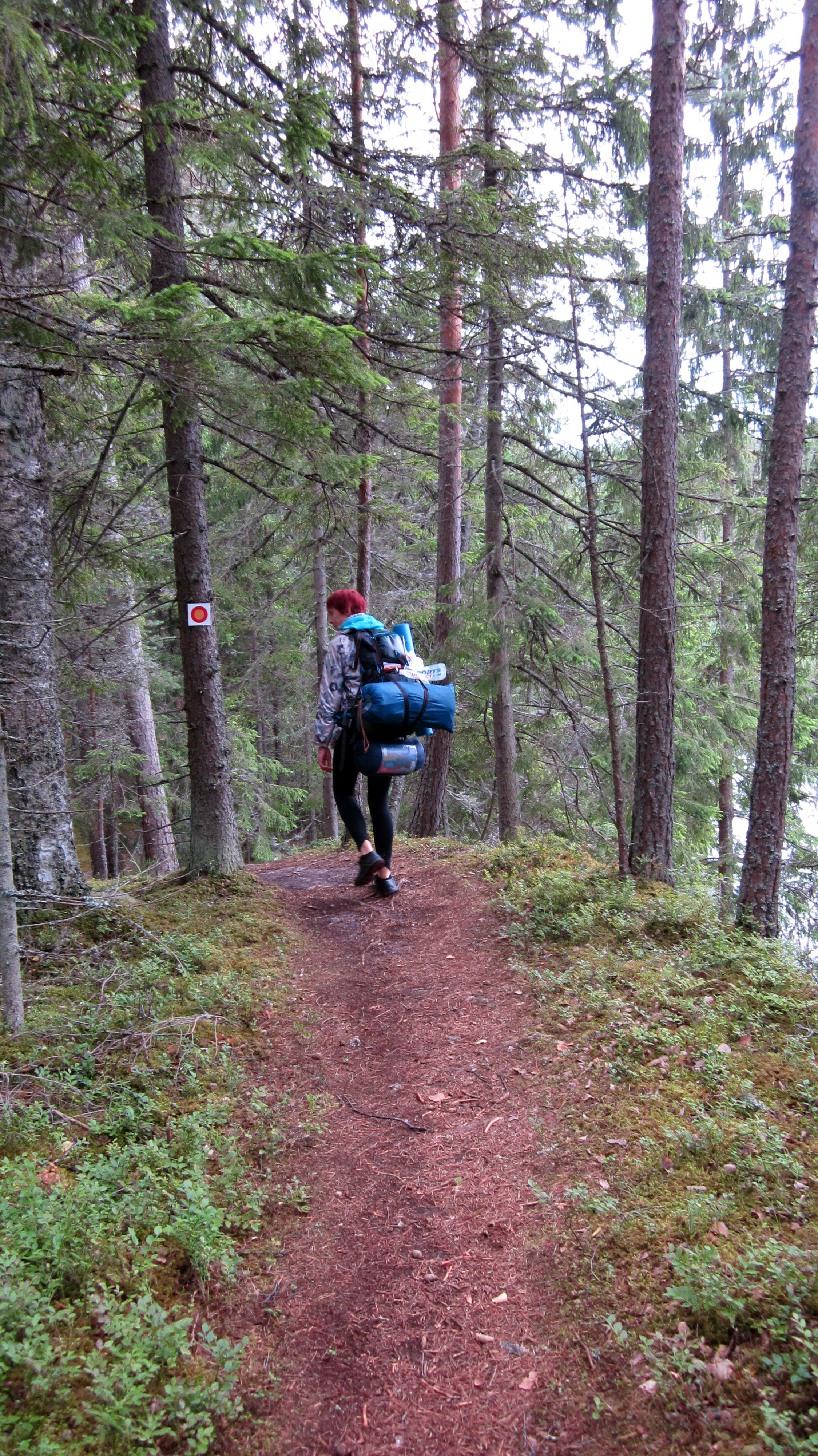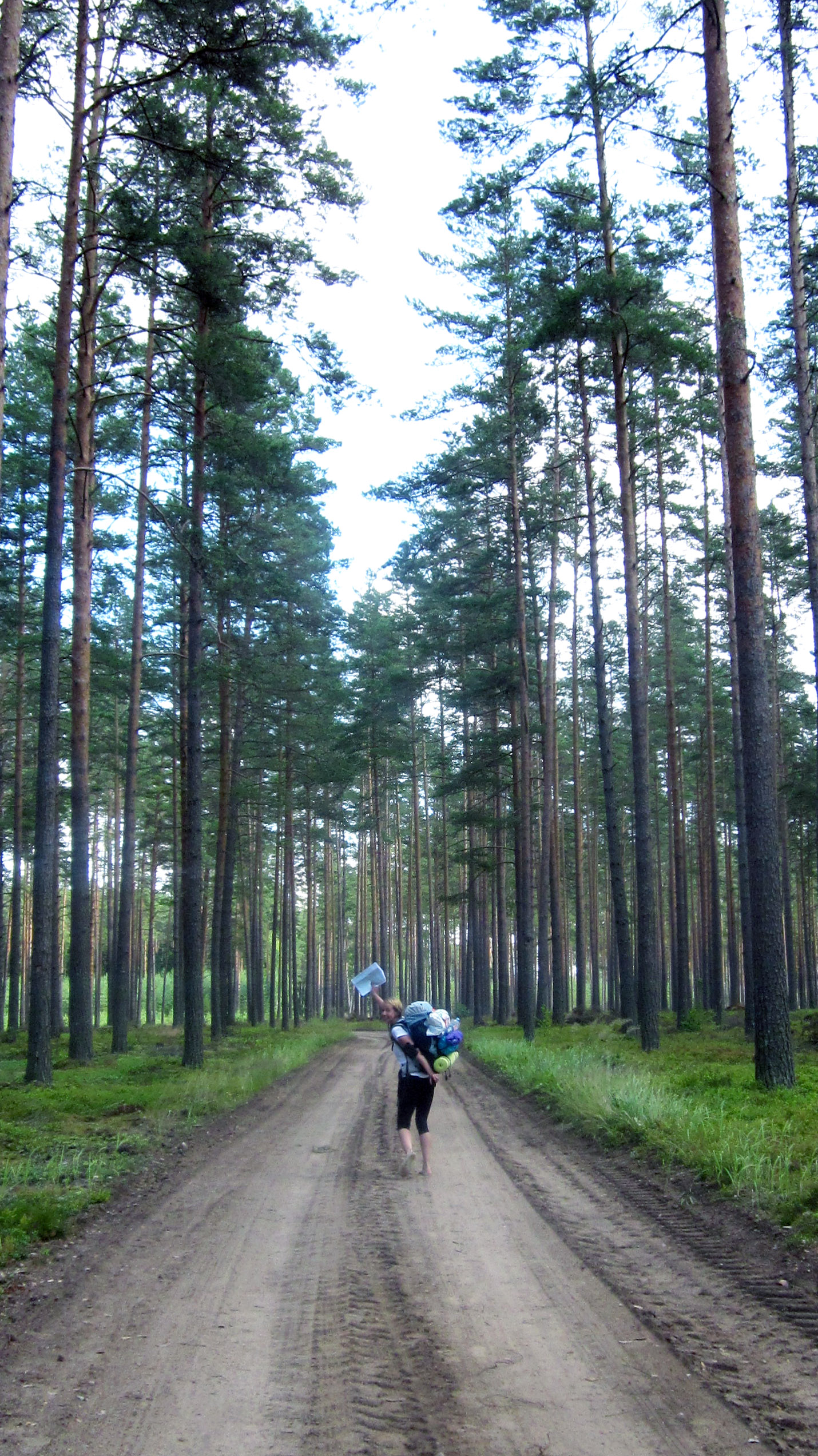 Matkavarustus. Jalgsi matkamisega on see lugu, et pead kogu inventari terve teekonna vältel seljas tassima. Nii et mida vähem seda kaasa tassid, seda lihtsam on. Ja hiljem on ka vähem kirumist. Meie matkavarustuses sisaldusid: telk, korralikud telgivaiad, magamiskott (siinkohal meeldetuletus järgmiseks matkaks: võta kaasa soojapidavam magamiskott!!!), täispuhutav padi, joogamatt, primus, gaas, varugaas, pott, pann, plastiknõud, söögiriistad, taskulamp, sääsetõrjevahendid, esmaabivajendid, hügieenitarbed (nende arvelt oleks võinud kotis ruumi kokku hoida, kuna pesemisvõimalused olid teekonnal ikka väga piiratud ja saabusin koju täpselt nende samade neljapäevaste punupatsidega), toidumaterjal (sh maitseained, õli jne), riided, varujalanõud, veel riideid.