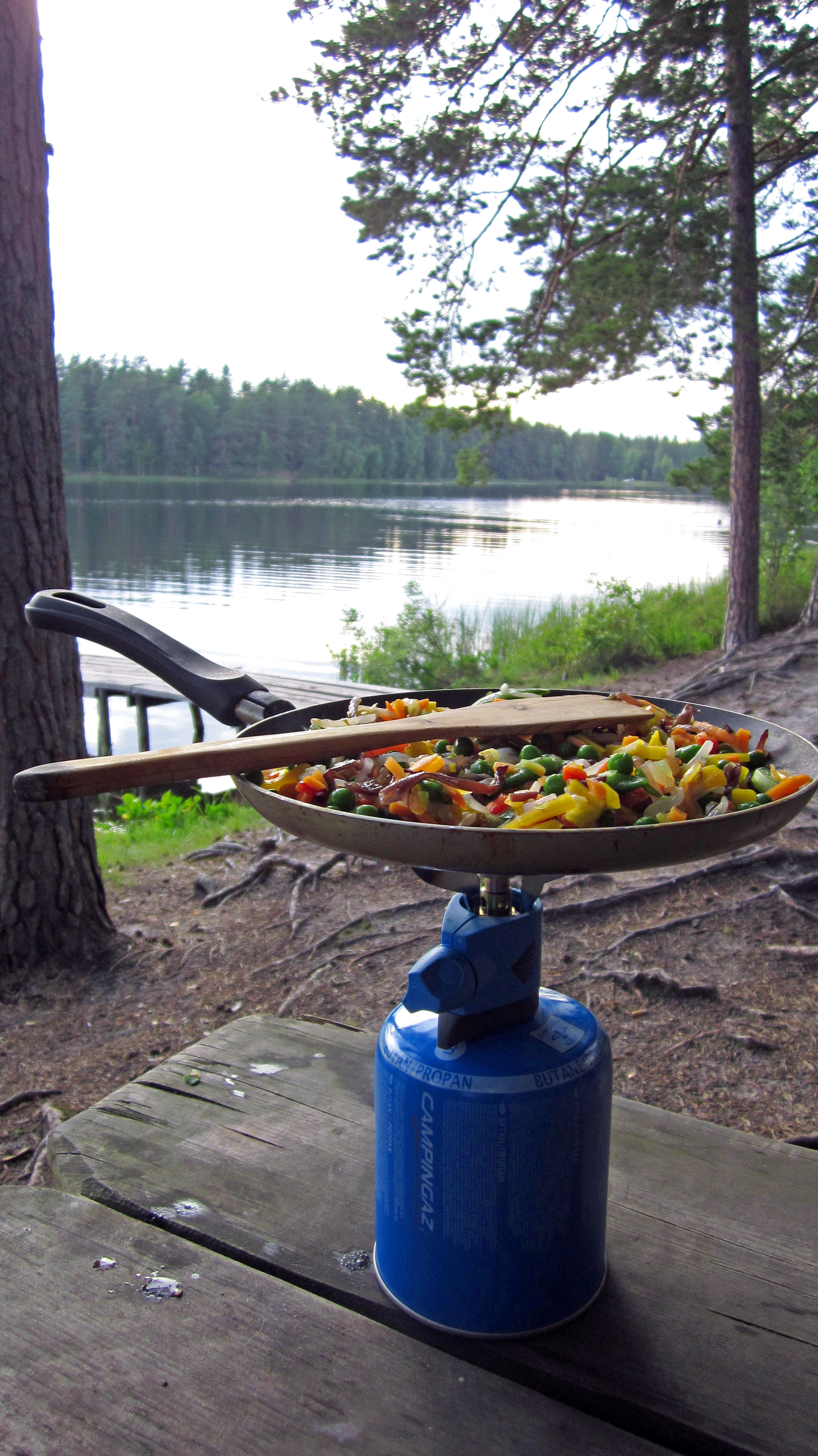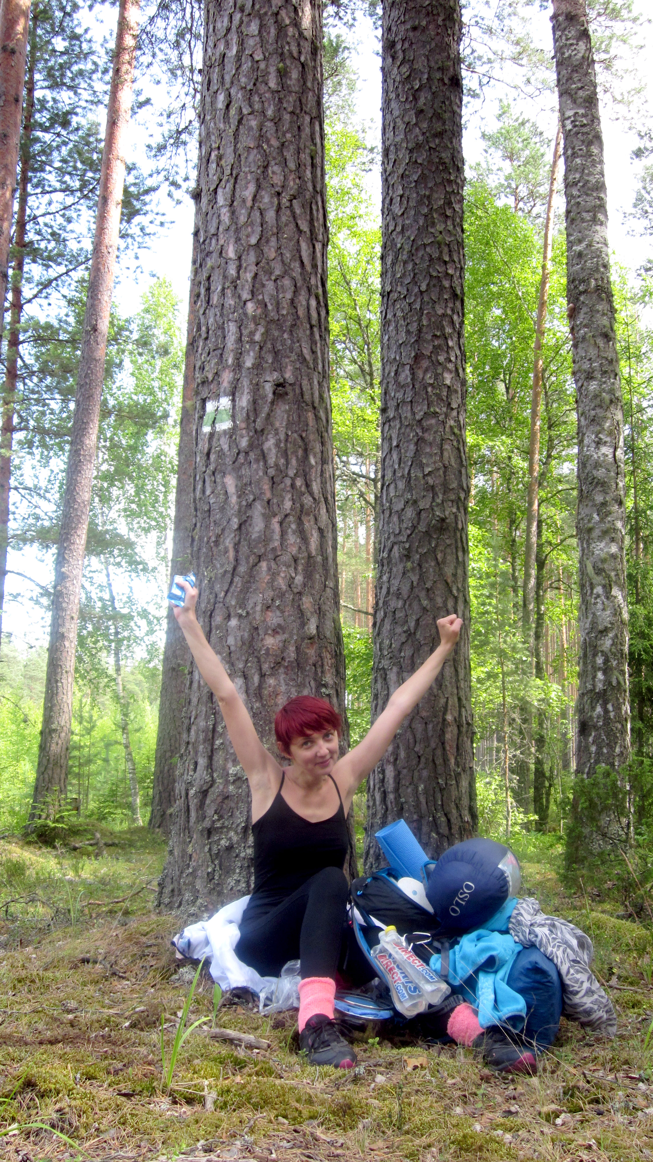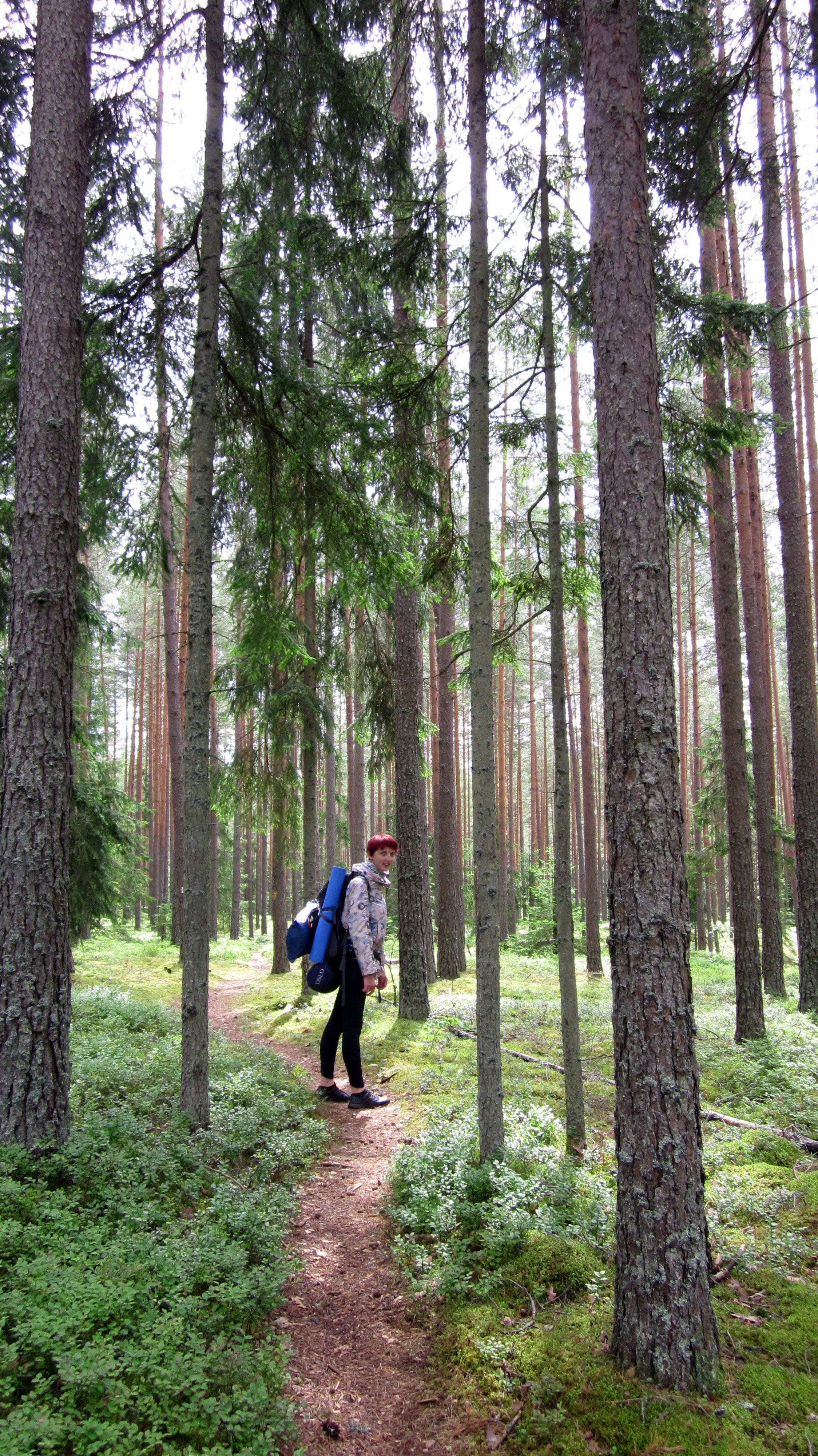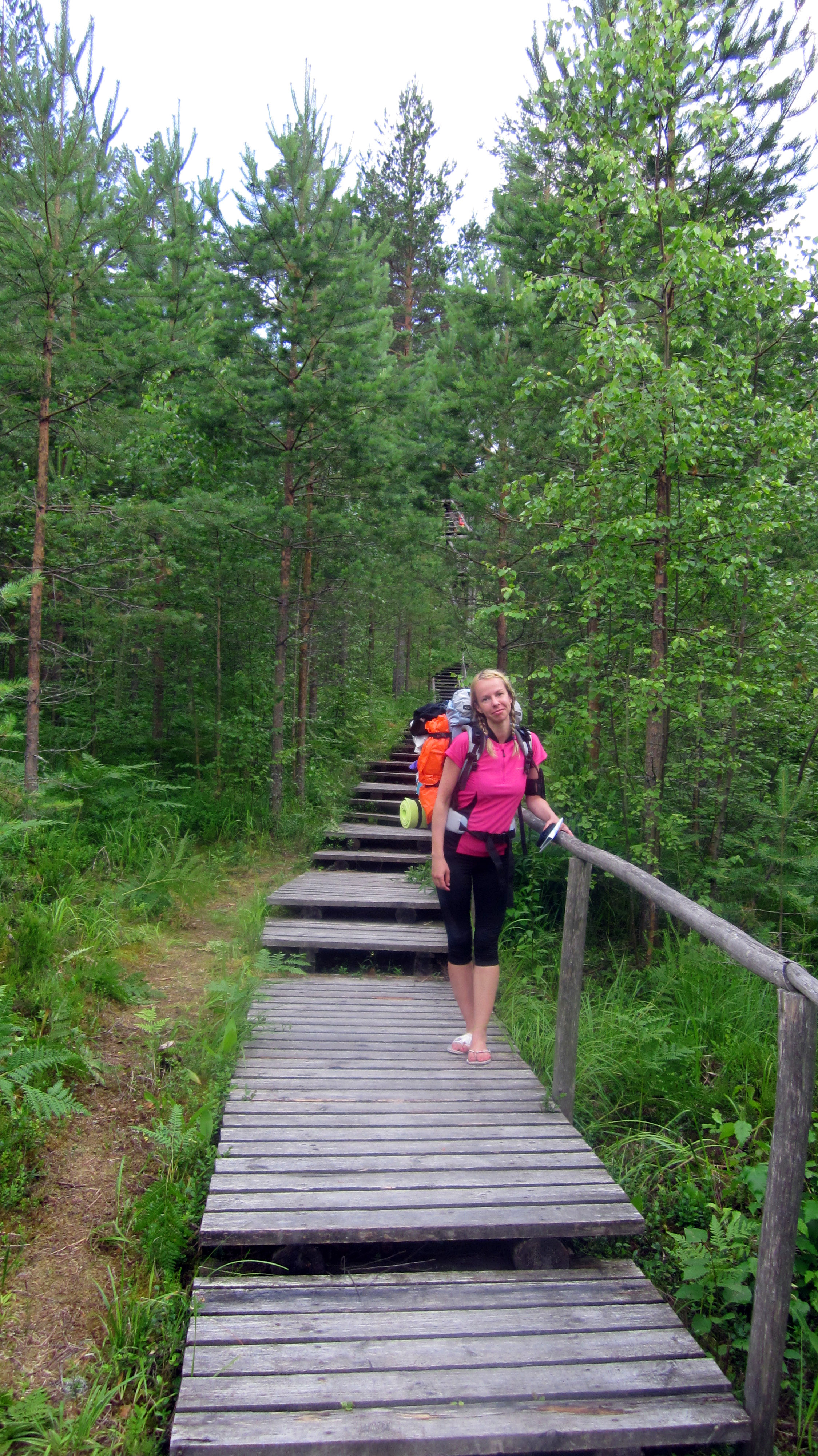 Matkavarustus. Jalgsi matkamisega on see lugu, et pead kogu inventari terve teekonna vältel seljas tassima. Nii et mida vähem seda kaasa tassid, seda lihtsam on. Ja hiljem on ka vähem kirumist. Meie matkavarustuses sisaldusid: telk, korralikud telgivaiad, magamiskott (siinkohal meeldetuletus järgmiseks matkaks: võta kaasa soojapidavam magamiskott!!!), täispuhutav padi, joogamatt, primus, gaas, varugaas, pott, pann, plastiknõud, söögiriistad, taskulamp, sääsetõrjevahendid, esmaabivajendid, hügieenitarbed (nende arvelt oleks võinud kotis ruumi kokku hoida, kuna pesemisvõimalused olid teekonnal ikka väga piiratud ja saabusin koju täpselt nende samade neljapäevaste punupatsidega), toidumaterjal (sh maitseained, õli jne), riided, varujalanõud, veel riideid.