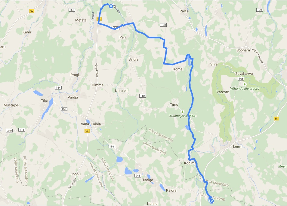 Ettevalmistused. Neid oli rohkelt. Esmalt pidime otsustama, millise jupi me sellest pikast teekonnast valime. Mind on alati ahvatlenud Lõuna-Eesti loodus ja maastikud ning seadsimegi matka alguspunktiks Kiidjärve looduskeskuse: rongijaamale lähedal ja võimalus RMK majast ka kaarte kaasa haarata. Matka lõpp-punkti me paika ei pannud, kuna polnud kindlad mitu päeva me vastu peame ja mitu kilomeetrit me päevas kõnnime. Pikemat kui viiepäevast matka ei saanud me aga ette võtta, kuna tahtsin triatlonile eelneval päeval kodus olla. Ja kui nüüd aus olla, siis olime matka suhtes liialt optimistlikud: pidasime võimalikuks päevaseks kilometraažiks ligi 40 kilomeetrit, ehk siis oleksime peaaegu Setomaale välja jalutanud. Nii see aga ei läinud. Sellest aga täpsemalt hiljem.