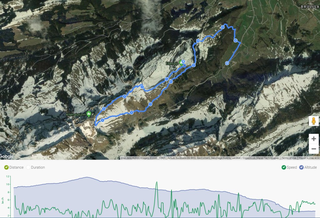 Mägimaja Berggasthaus Schäfler, mis asus 1920 m kõrgusel, pakkus värskendavad õlut ja maitsvat kohalikku toitu- vorste ja kartulisalatit. Google järgi oli matkateekonna maksimaalseks kõrguseks 1973 m ja minimaalseks 905 m merepinnast, st laskumismeetreid oli üle 1000. Rada viis mööda mäeharja Altenalp Türm’ini, tagasiteele jäi veel vinge kaljurestoran/külalistemaja Aescher-WildKirchli, mis on ilmselt nii populaarne, kuna on National Geographicu kaanel olnud.