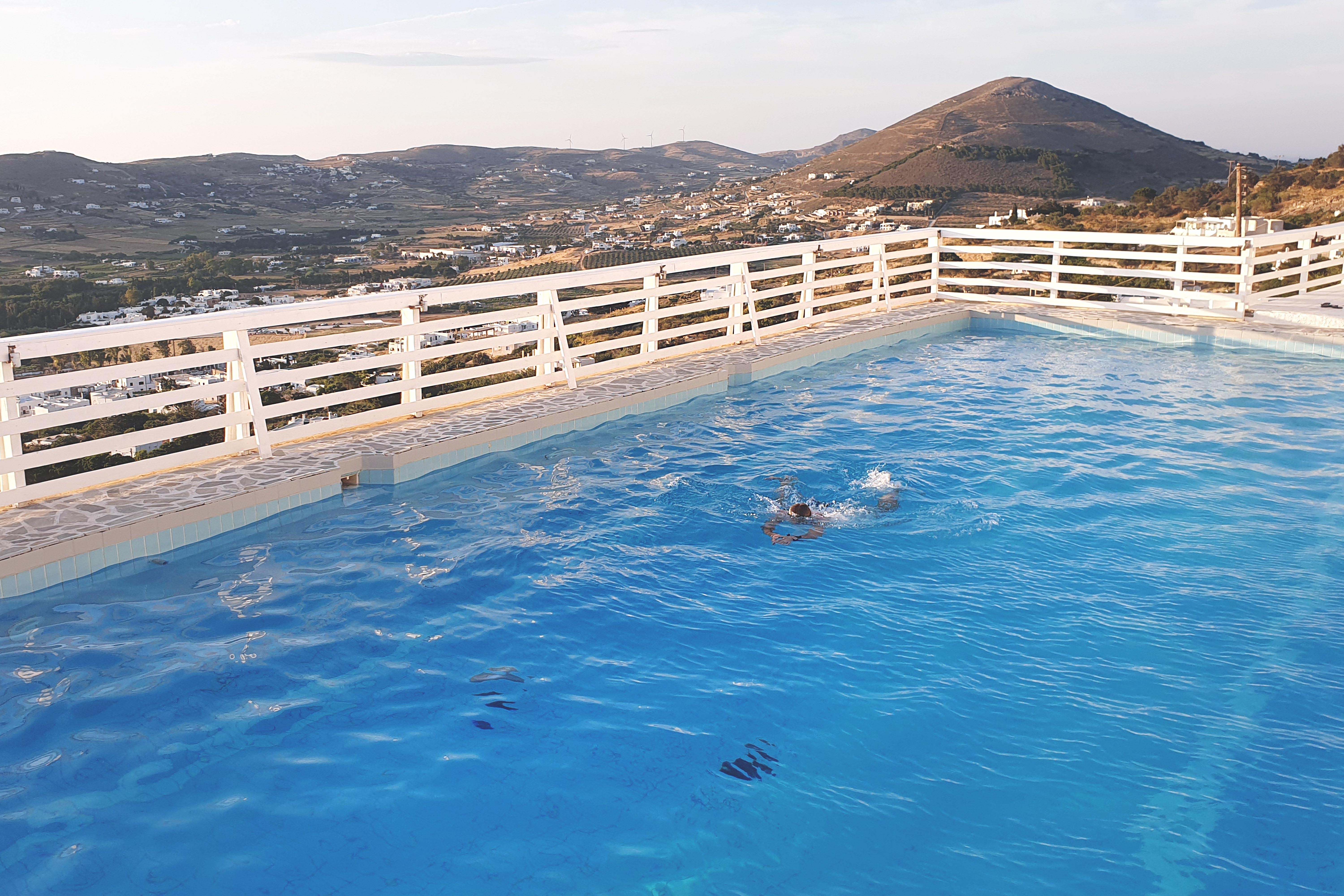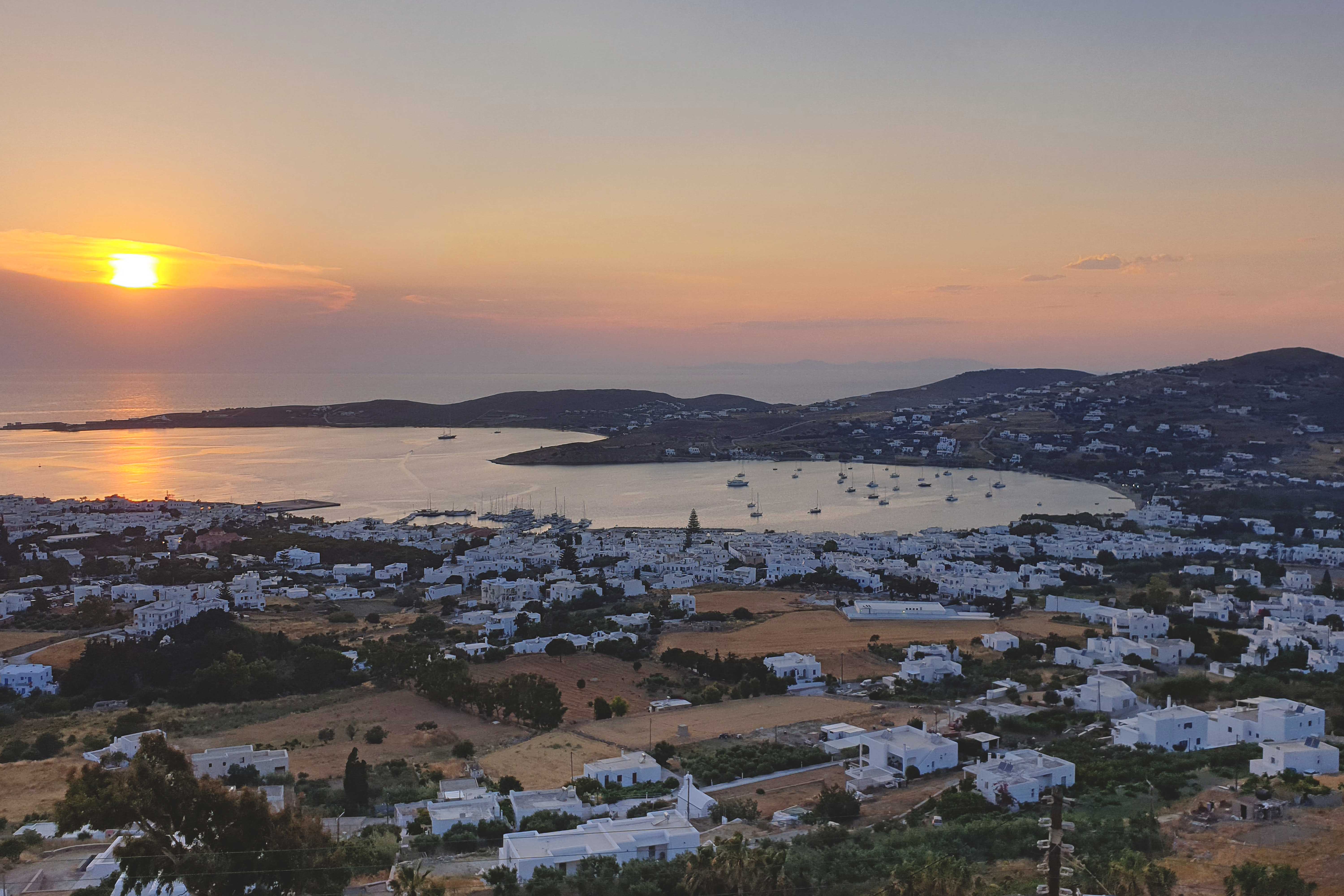 Kuna mul on korralik kiiks alati sorteerida majutuskohtade seast välja need, millest avanevad kõige kaunimad vaated, siis jäi sel korral sõelale Golden Sunset Paros (Maps’is leitav SIIT). Hotell asus küll üle 2 kilomeetri kaugusel Parikia sadamast ning jalgsi õhtupimeduses kohvritega mööda järsku mägiteed sinna turnida oli paras katsumus, kuid vaated hotellist olid see-eest kogu seda vaeva väärt. Ja tegelikult pakub hotell ka transporti, niiet te ei pea meie rumalust kordama ja saate kokkulepel mugavalt autoga ukseni.