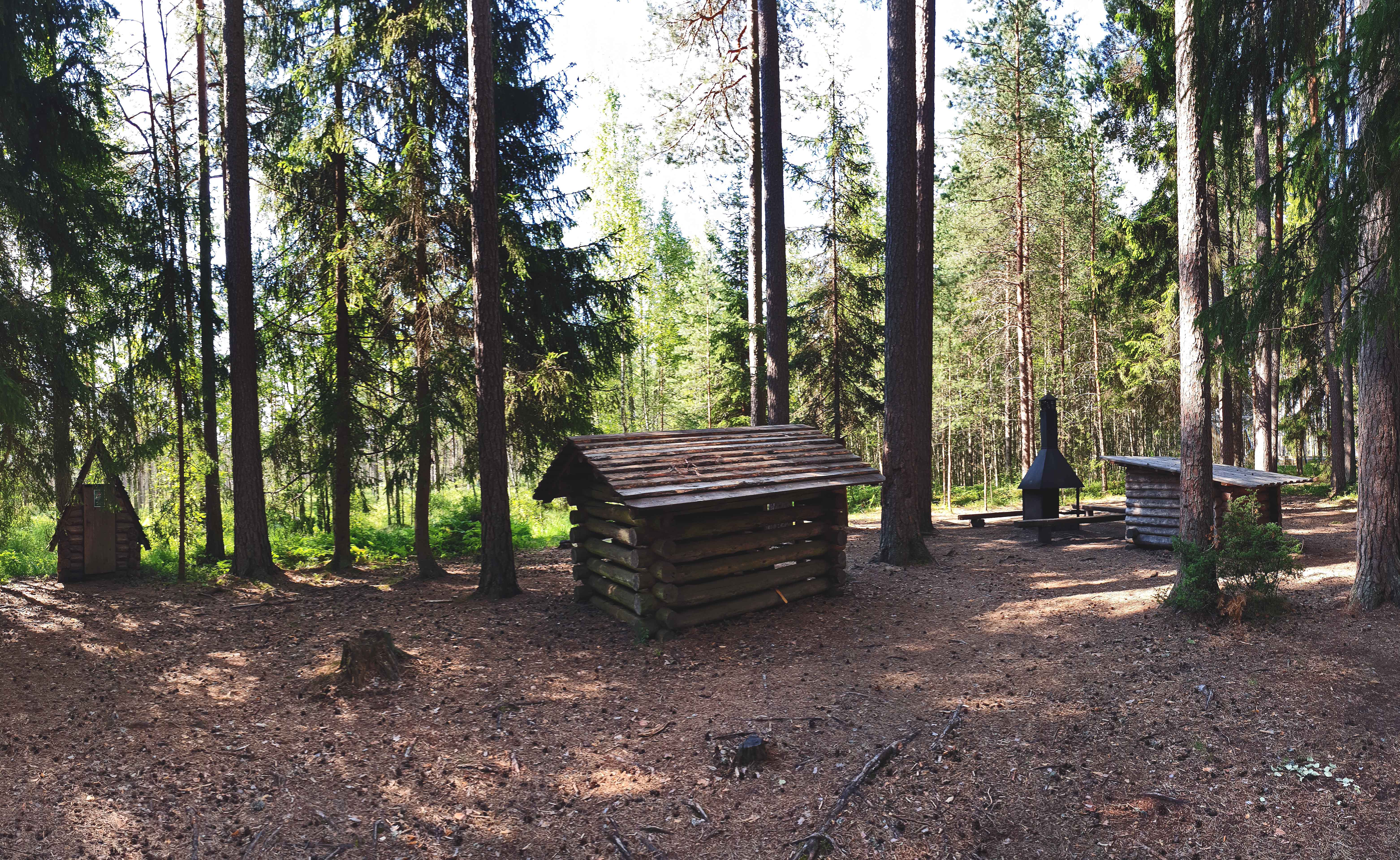 Raja alguspunktis (vaatetorni läheduses) on päris suur ala, kus on võimalik lõket teha, grillida ja telkida ning olemas on ka kuivkäimla ja lõkkepuudele varjualune. Pinnas on telkimisalal midagi krõmpsuva multšisegu ja männiokka-mullasegu vahepealset, seega telgiuksest väljudes varbaid muru sisse pista paraku ei saa.