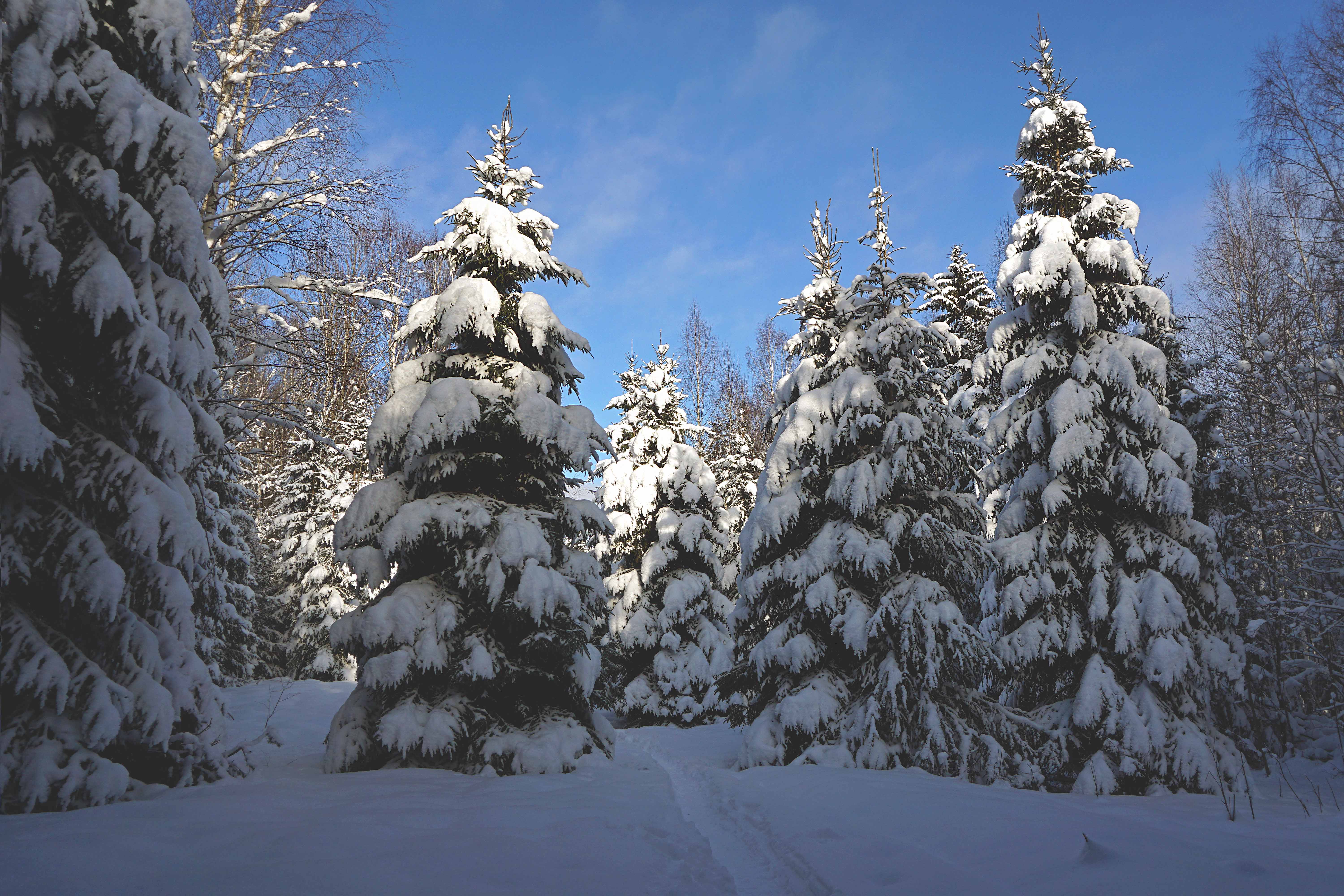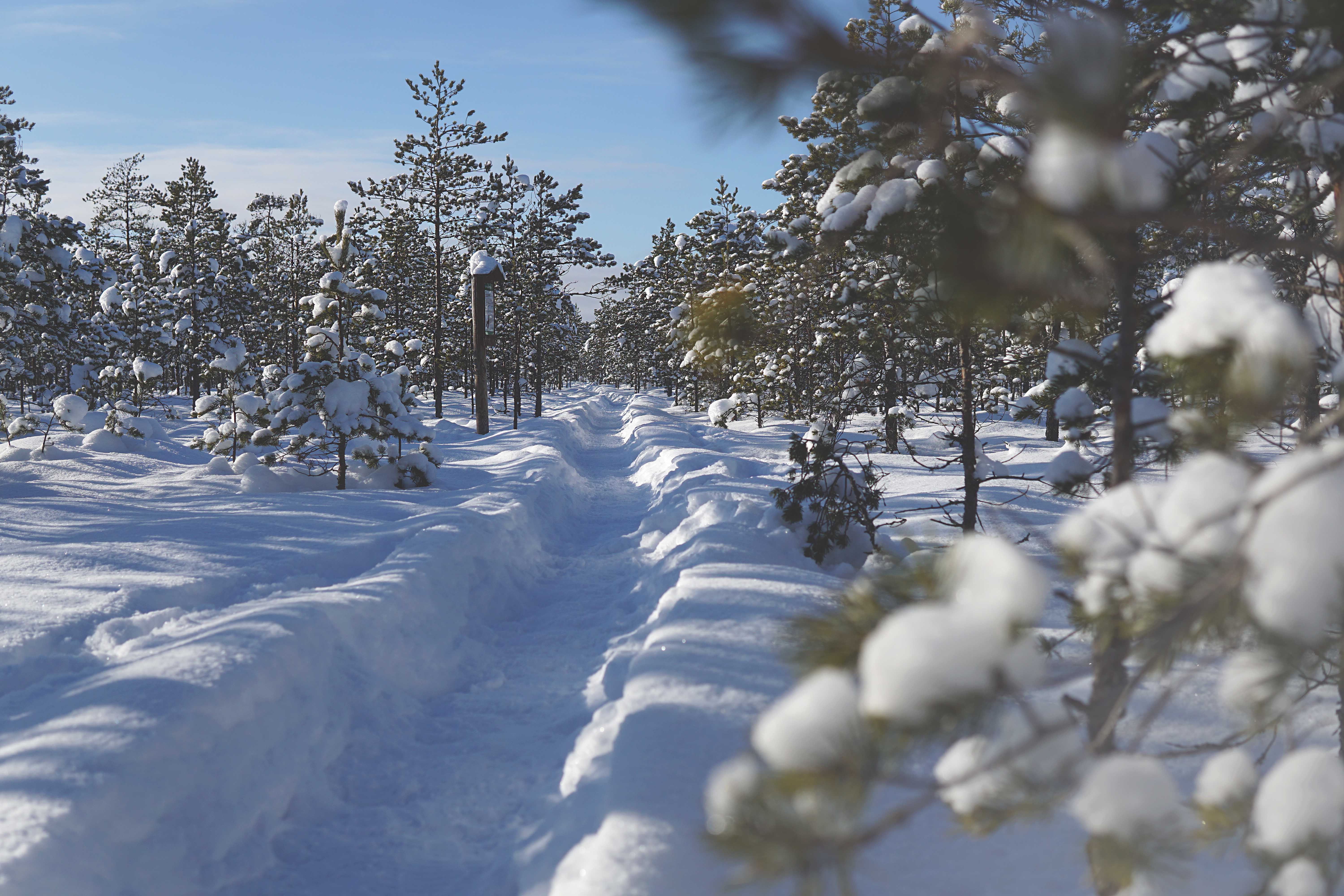 Tagasitee läbi Kellämäe kuusiku pakub vägevat lumist vaatepilti.