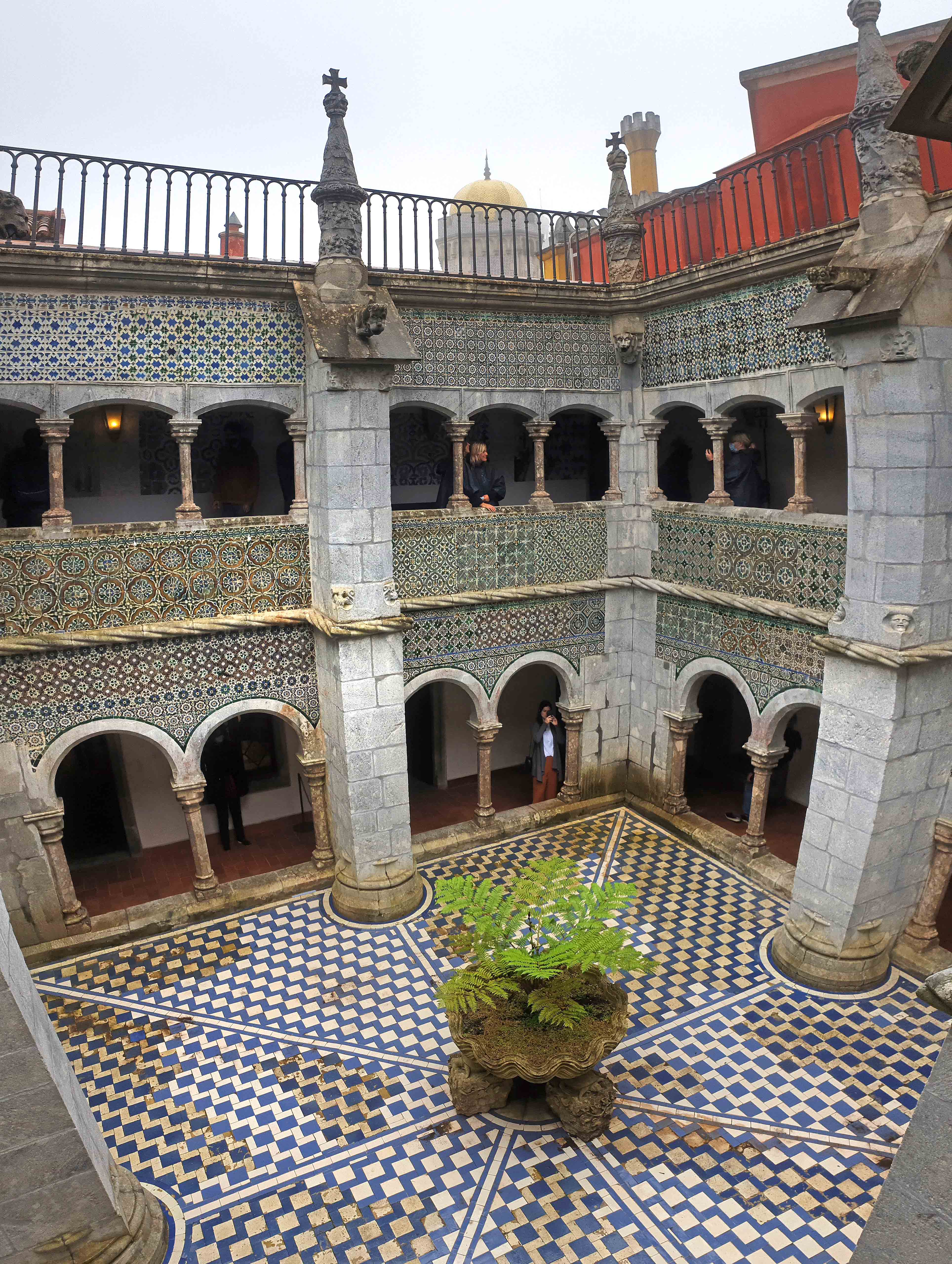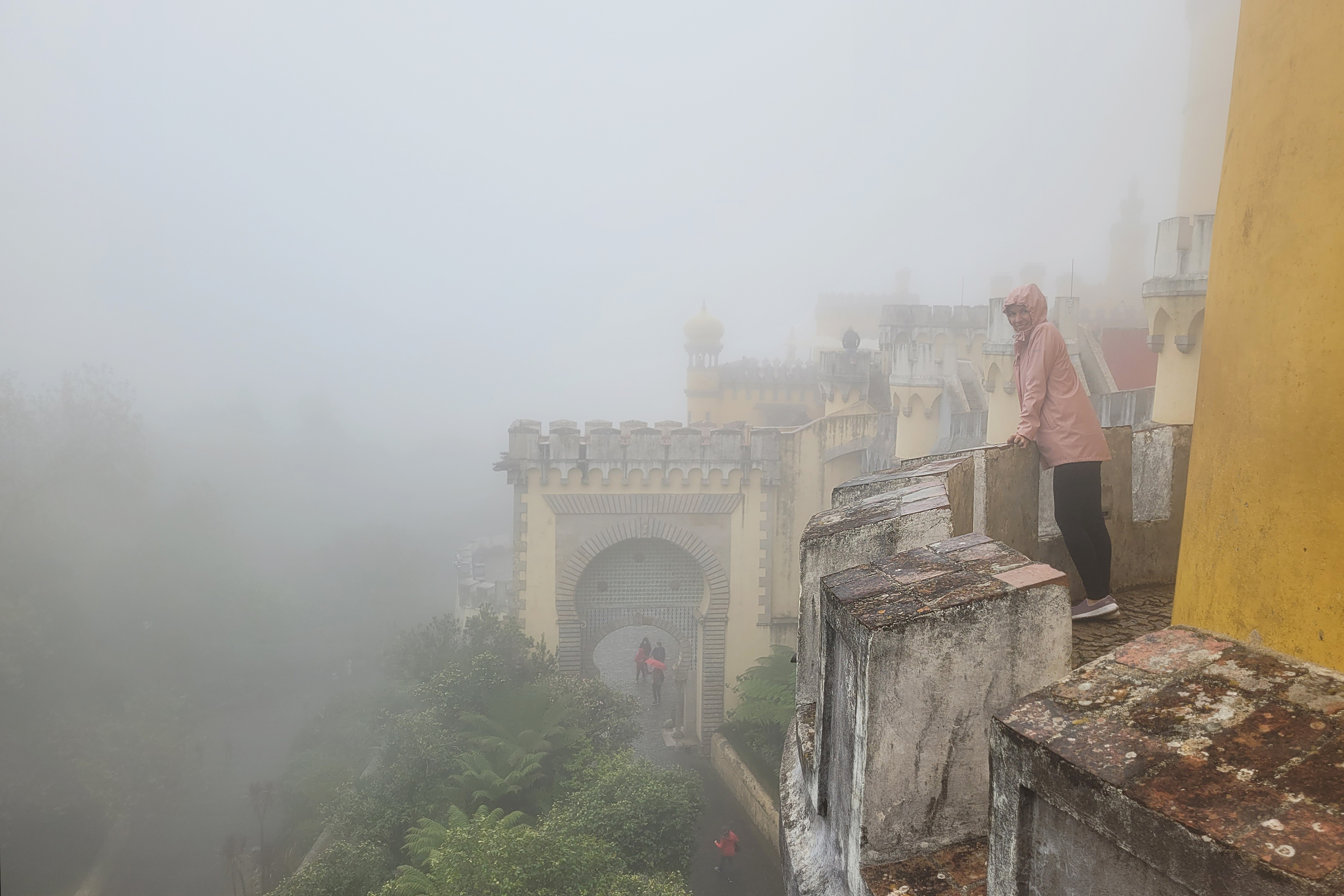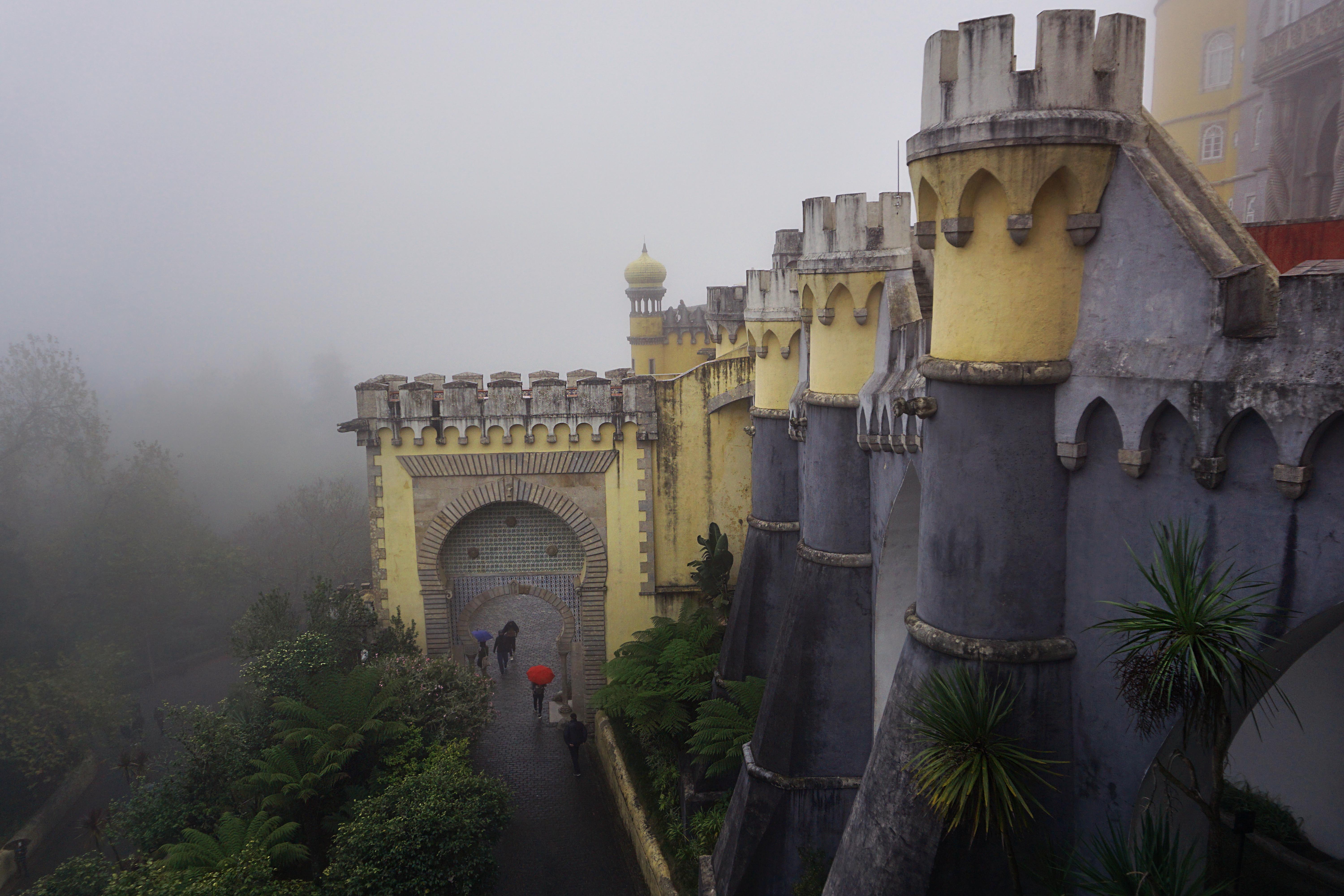 Haarasime katusekohvikust väiksed võileivad ja joogid ning kui olime valmis paleega tutvuma minema, tugevnes tuul kiiresti ja loss mattus pilvedesse. Nähtavus muutus hetkeks pea olematuks, kilejope tuli kui viinerikile endale ümber tõmmata ning järsku olid kadunud ka kõik need inimesed, kes enne lossiõuel ringi jalutasid. Kogu see olustik oli nii sürr ja ebamaine – justkui oleks muinasjuturaamatusse sisse astunud.