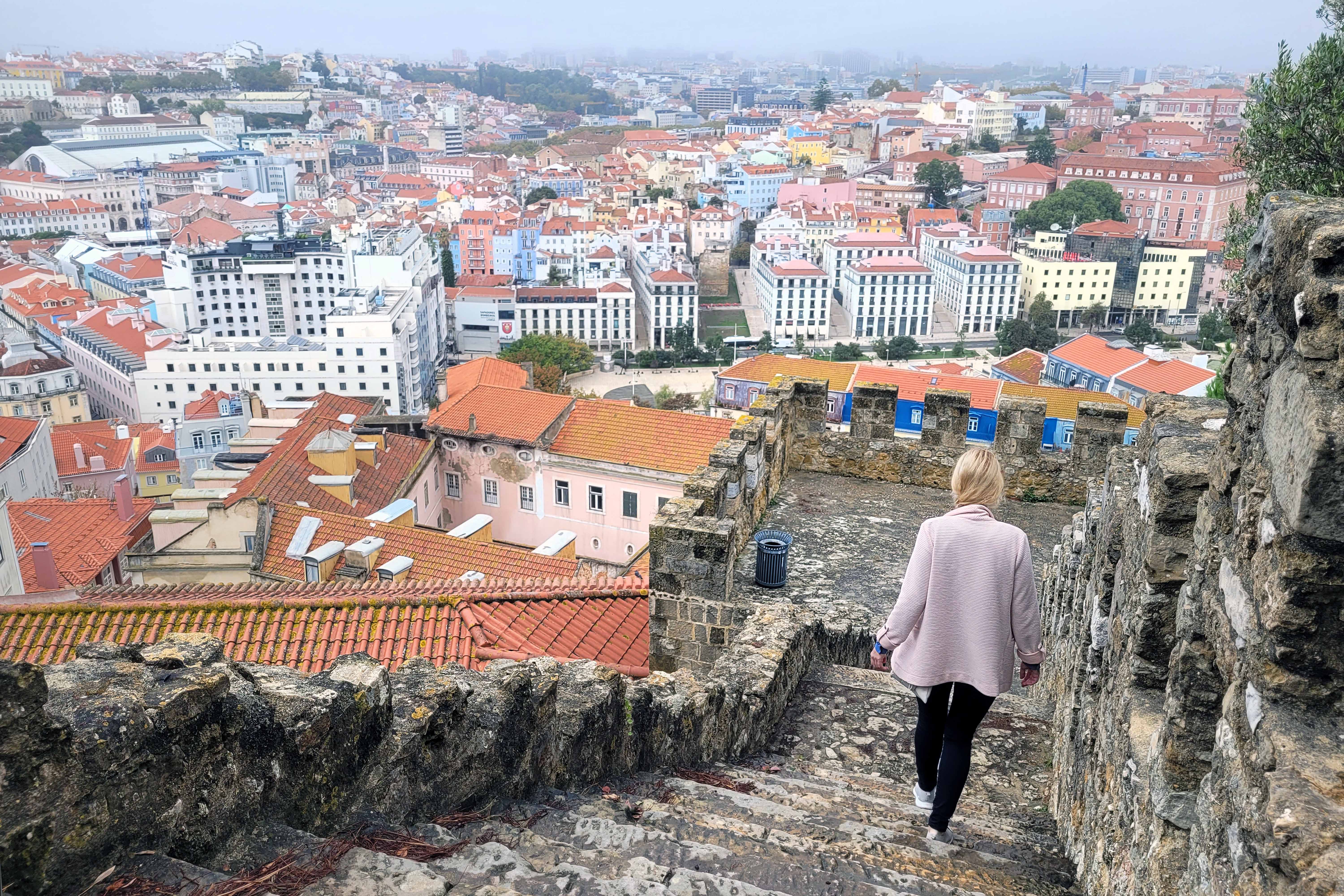São Jorge kindlus (Castelo de S. Jorge) on kindlasti koht, kust nautida kauneid vaateid Lissaboni linnale. Juba ainuüksi nende vaadete pärast tasub see 10 eurot sissepääsu eest välja käia. Kuna ilm oli taas pilvine ja udune, siis kuulus Lissaboni sild üle Tejo jõe (25 de Abrili – ehk 25 apriili, revolutsionipäeva sild) paistis vaid häguselt.