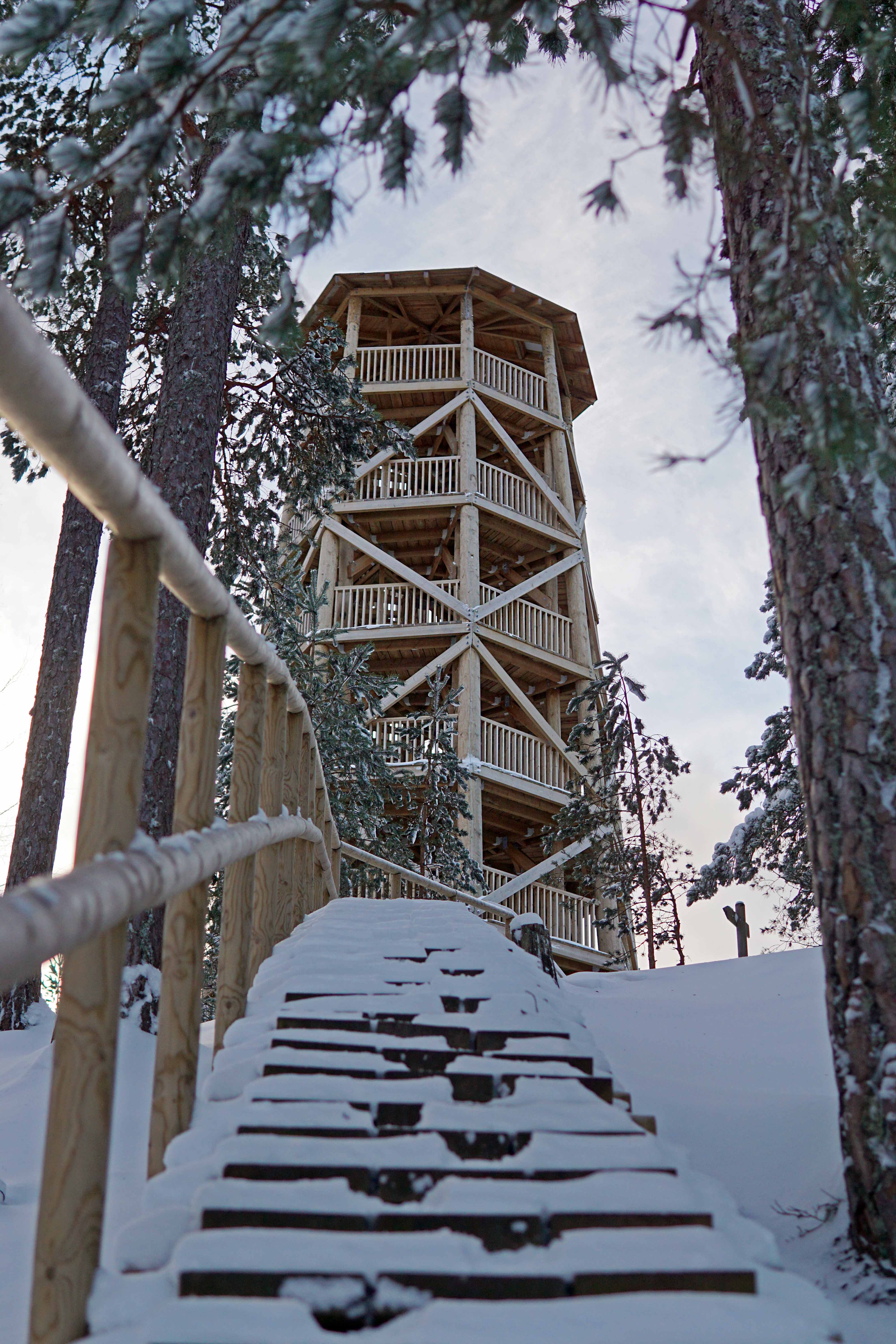 Männimetsast välja jõudes viis laudtee üle sooserva vaatetornini, kus tegime väikese tee- ja piparkoogipausi. Ligi 23-meetrisest tornist avaneb vaade ümbritsevale metsale ja soomaastikule ning võis jälgida eemalt lähenevaid matkajaid.