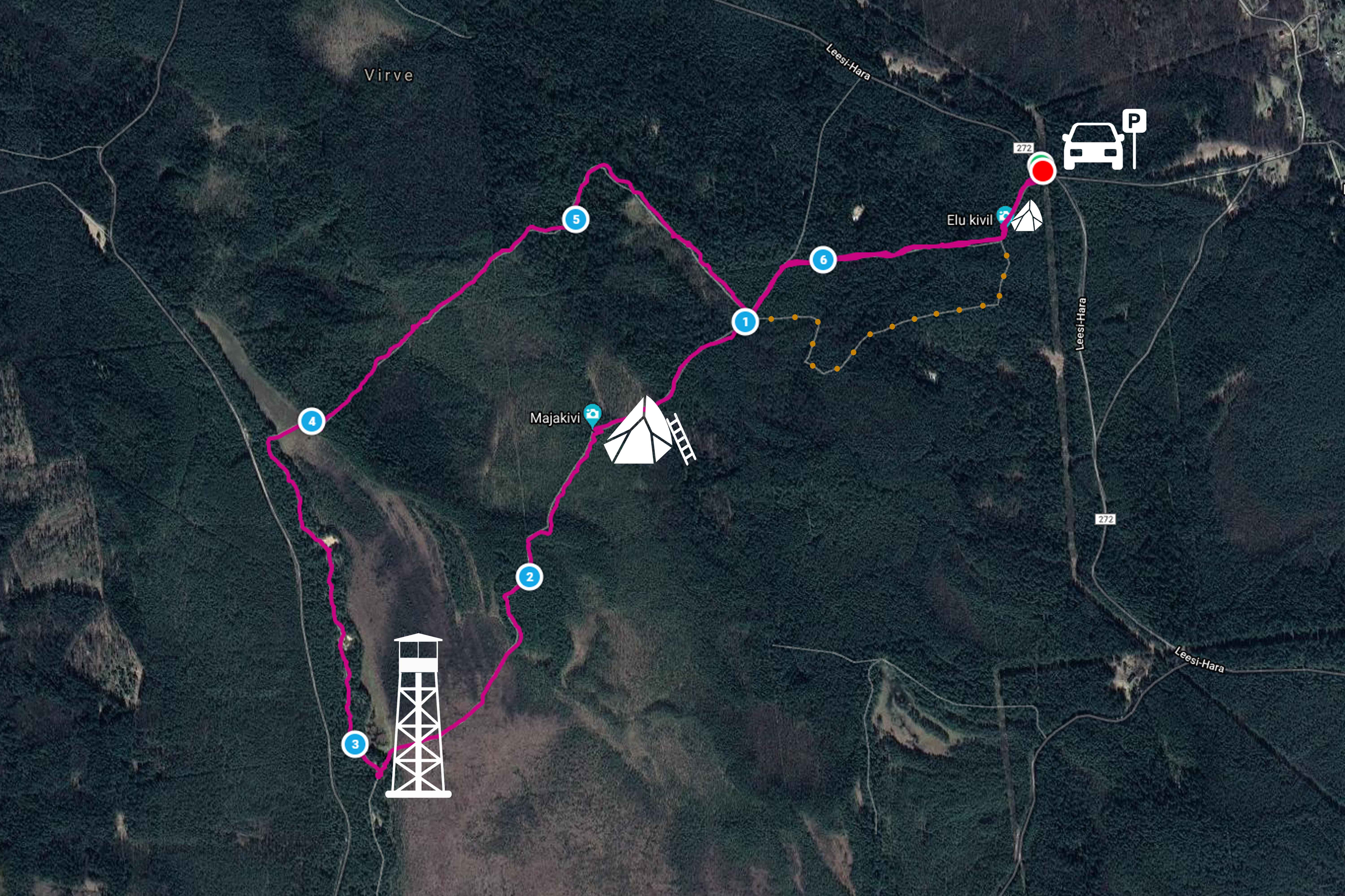 Rada kulgeb vaheldumisi metsateel ja siis jälle laudteel, rajale jääb ka üks Eesti suurimatest rändrahnudest – Majakivi – mille kõrguseks on 7 meetrit ning ümbermõõduks lausa 32 meetrit. Kivi otsa ronimiseks on olemas ka puidust redel, kuid säärase lume ja libedaga ei tundunud see mõistlik tegevus olevat.