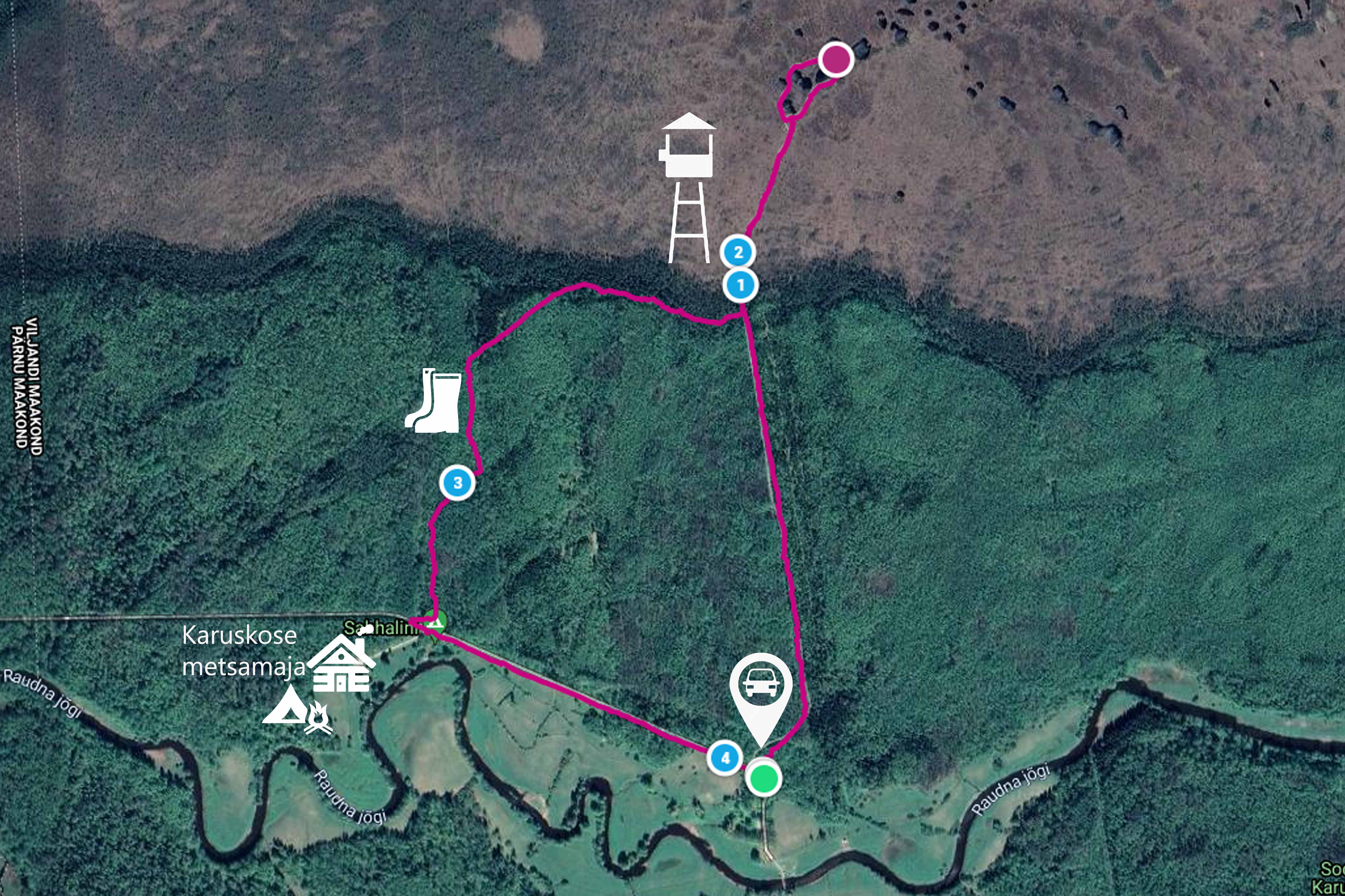 Viimane lõik tuleb jalutada mööda pinnasteed, kuid enne parkla poole tagasitpöördumist võib väikese põike teha ka lähedal asuva Karuskose metsavahi metsamaja juurde. Metsamaja ise ei ole küll tasuta kasutamiseks, see tuleb ette broneerida SIIT, kuid kui maja ise on vaba ja ajutised üürilised platsi pole hõivanud, siis võib vast oma piknikku seal pidada küll.