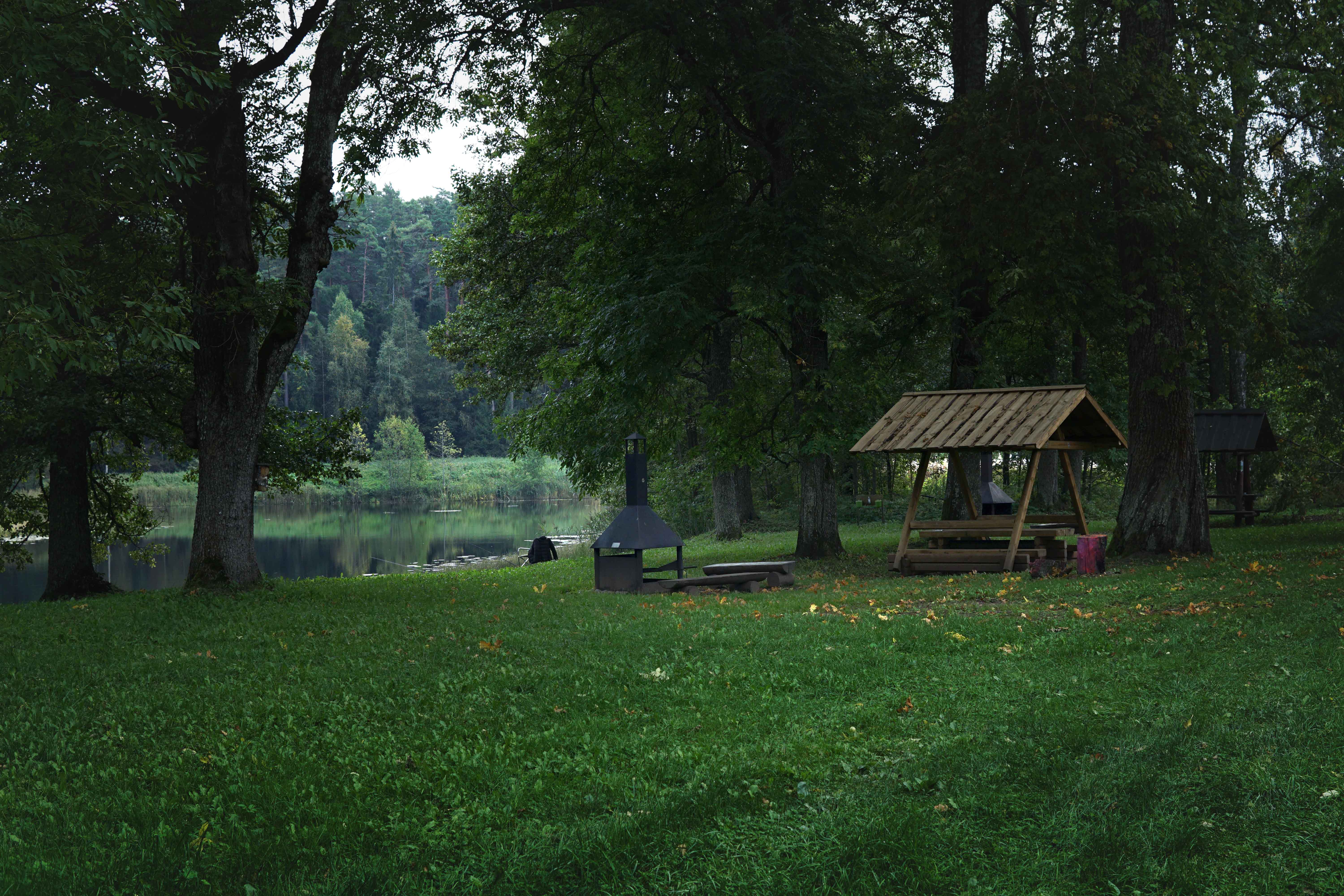 Metsamaja kõrval on puukuur, kuivkäima ning lõkkekoht koos grillimisalusega. Pärast sauna saab end värskendada järvevees.