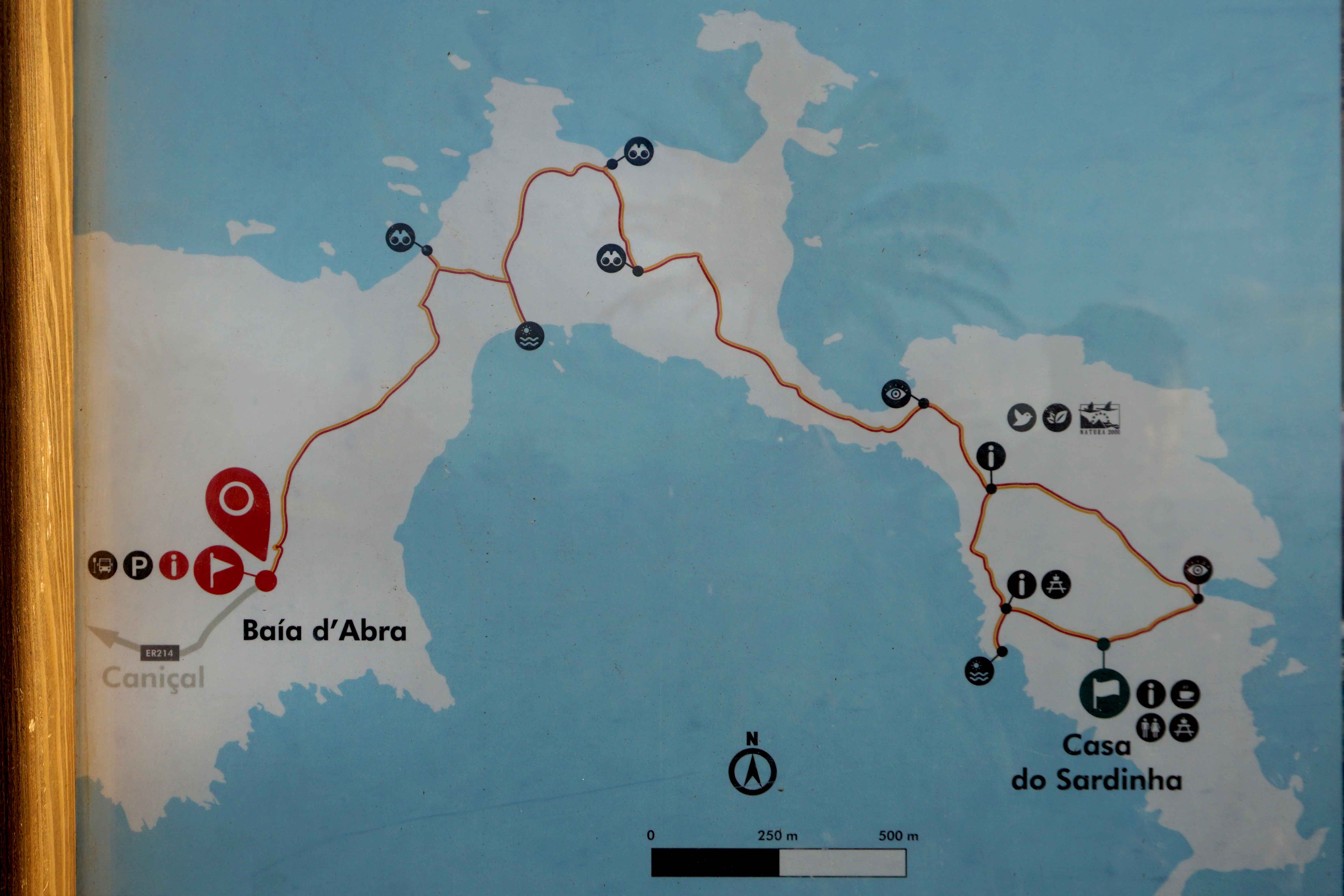 Eemalt paistab oaas – ehk siis kohvik Casa do Sardinha, mis oli kahjuks meie käigu ajal veel suletud. Kohviku lähedal asub Praia das Sardinhas – selle väikse sadamakese kaudu tuuakse ka kohvikusse kaupa ning sealse kai pealt saaks ka väikese kosutava supluse meres ette võtta.