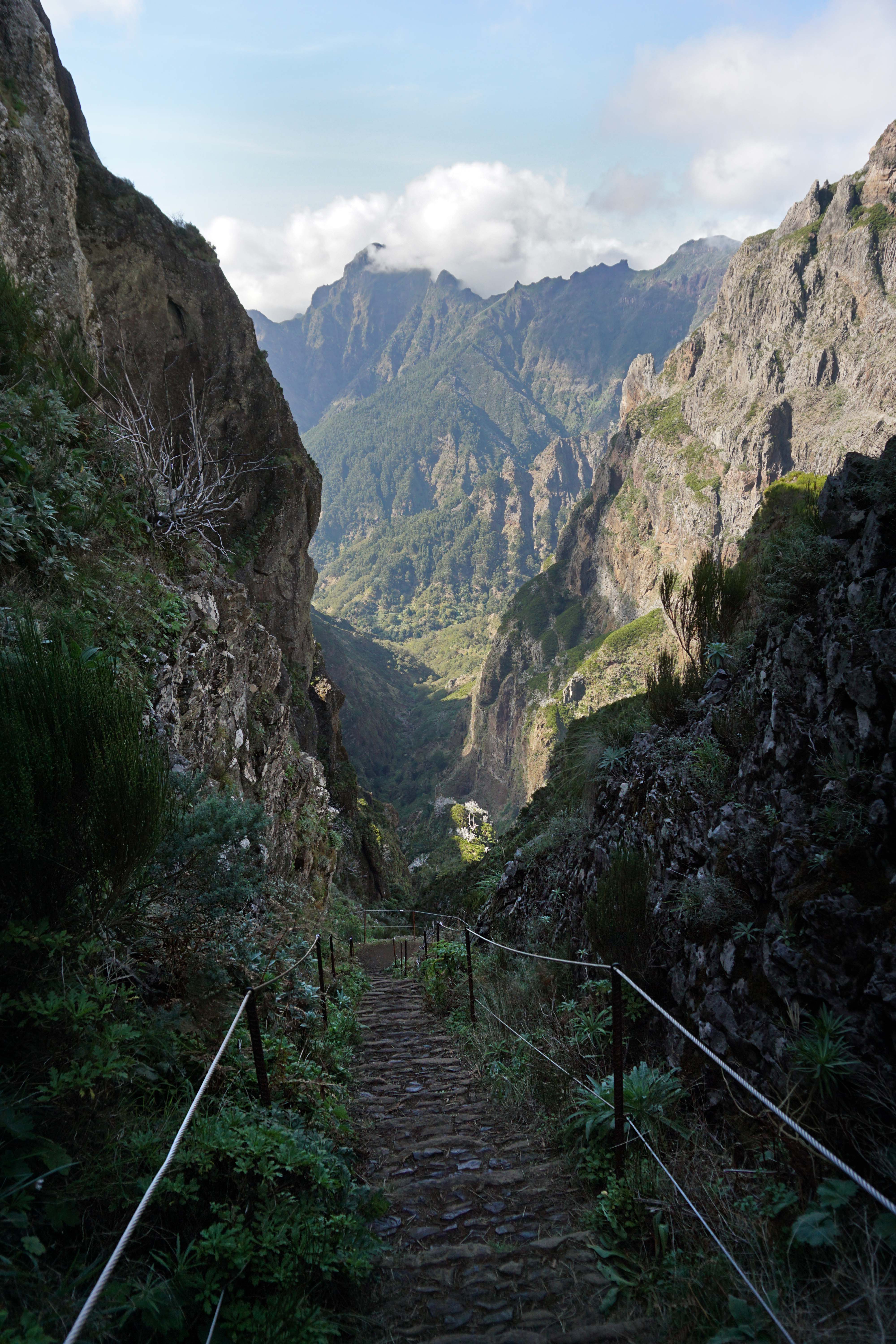 Esimene kilomeeter on tõenäoliselt kogu matka kõige ilusam osa! Seal asub ka esimene vaatepunkt – Ninho da Manta – mis meenutab rõdu ja sealt avanevad imelised vaated mäeorule. Sellele järgnevad need kurikuulsad sünged trepid, millele üles vaadates jääb mulje justkui oleksid need taevatrepid ning Miradoura Rija vaateplatvorm, kust paistavad saare ida- ja läänekülg. Sellest ägedast rajaosast on hulgim pilte postituse lõpupoole – kui olime juba tagasiteel.